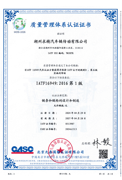 Huzhou qiujing automobile chain transmission co., LTD. Was established in 1999, the registered capital of 30 million yuan, is automotive engine chain and timing system research and development and production base, the company is located in the Yangtze river delta economic zone center of huzhou city, the company has 200 employees, 50 technical personnel, including 25 r & d personnel.